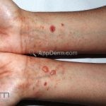 Líquen plano anular: as lesões são anulares, a borda é levemente elevada e purpúrica, com o centro hipercrômico ou cor da pele. Os locais preferidos são as axilas, pênis, extremidades e região inguinal. Costuma ser assintomático.