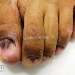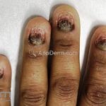 Líquen plano ungueal: as alterações de matriz, como afinamento da porção lateral, estrias longitudinais e fissuras podem resultar na formação de pterígio. Alterações inespecíficas de leito, como manchas, hiperceratose e onicólise ocorrem com frequência. Em alguns casos, a distrofia das vinte unhas pode representar uma variante da doença.