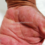 Líquen plano inverso: o acometimento ocorre em áreas de dobras, como axilas, virilhas e dobras infra-mamárias.