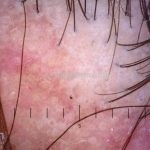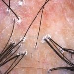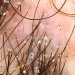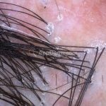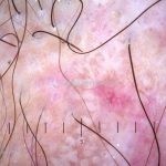 Dermatoscopia: no líquen plano pilar, o achado característico é a descamação perifolicular concêntrica. Em alguns casos, podem ser observadas pústulas, eritema perifolicular, pelos distróficos e cilindros capilares. Nos negros, visualizamos pontos brancos e pontos cinza-azulados em padrão de alvo ou difuso. Nas lesões clássicas, observamos as estrias de Wickham e pontos avermelhados.