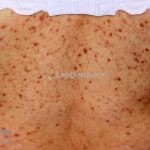 Telangiectasia macular persistente: pequenos vasos levemente estáticos na derme e mastócitos ao redor.