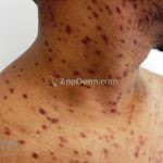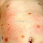 Mastocitoma: é menos comum e surge ao nascimento ou nos primeiros meses de vida. É uma placa numular ou pequeno nódulo eritematoso ou alaranjado, único ou múltiplo, assintomático, mais comum em tronco e extremidades. O Sinal de Darier é positivo. Não ocorre envolvimento sistêmico.