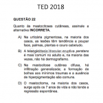Telangiectasia macular eruptiva persistente: é a forma mais rara, representa 1% das mastocitoses e é mais comum em adultos e adolescentes. São manchas acastanhas e telangiectasias difusas, assimétricas, localizadas em tronco e membros. Na maioria das vezes, não há sinal de Darier nem dermografismo, porém há alta incidência de envolvimento sistêmico (Azulay 8ª ed).