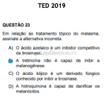 Ácido azelaico: derivado do fungo Pityrosporum ovale, têm ação seleta sobre os melanócitos hiperfuncionantes, atuando como inibidor competitivo da tirosinase. As concentrações usuais variam de 10 a 35%, sendo a mais utilizada de 20%.