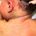 Acometem o pescoço e o tronco superior. As lesões costumam ser pruriginosas. Casos extensos podem comprometer a função termorregulatória, provocando hiperpirexia e uma síndrome de estresse ao calor. Quando o quadro for recorrente, a obstrução pode se tornar mais profunda e desencadear um quadro de miliária profunda concomitante.