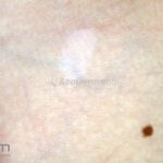 É uma mancha acrômica irregular que acompanha as linhas de Blaschko, pode apresentar tamanhos variados e presente desde o nascimento.