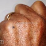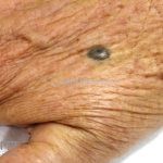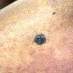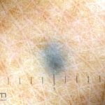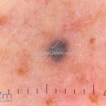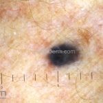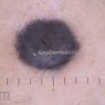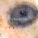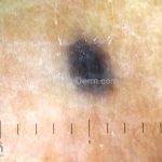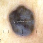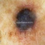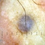Dermatoscopia: caracterizado por uma pigmentação homogênea cinza-azulada a preto-azulada.