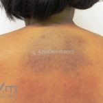 com processos dendríticos presentes na derme papilar e reticular. Há numerosos melanófagos espalhados e a fibrose variável. A epiderme pigmenta com freqüência.