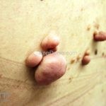 As lesões individuais podem ser sésseis ou pedunculadas, a superfície pode ser lisa ou cerebriforme.