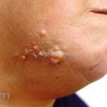 As lesões são caracterizadas por pápulas ou nódulos moles, amarelos ou cor da pele, agrupados, que não atravessam a linha média e podem seguir as linhas de Blaschko.