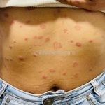 Classicamente, a erupção inicia com uma lesão maior (2-4cm), que precede as demais em 7 a 14 dias, denominada de medalhão ou lesão inicial, observada em 50 a 90% dos pacientes. Medalhões múltiplos já foram relatados.