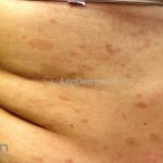 Após 7 a 14 dias, surgem inúmeras lesões em tronco e parte proximal dos membros, a face costuma ser poupada. São pequenas pápulas e placas semelhantes ao medalhão, nos pacientes de pele mais escura, as lesões tendem a ser mais papulosas e hiperpigmentadas.