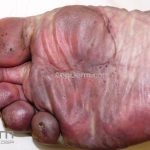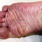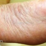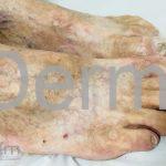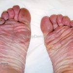 Poroqueratose palmoplantar disseminada: as palmas e plantas estão inicialmente acometidas, mas qualquer área corporal pode ser acometida, incluindo mucosas. As lesões costumam iniciar na infância e podem ser assintomáticas ou pruriginosas.