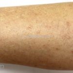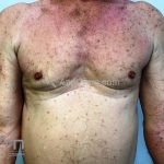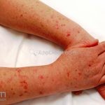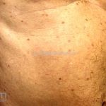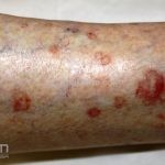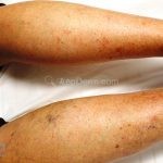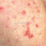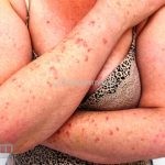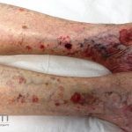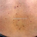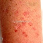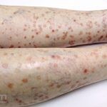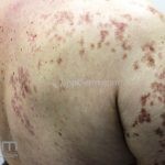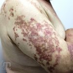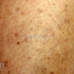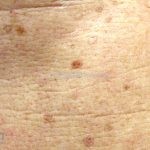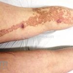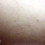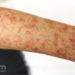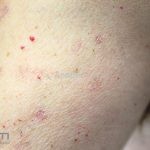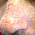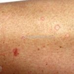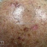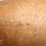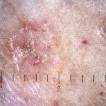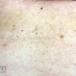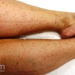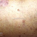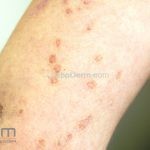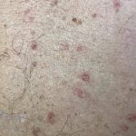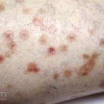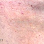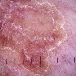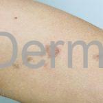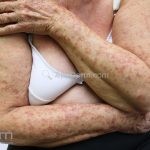 Poroqueratose actínica superficial disseminada (PASD): múltiplas pápulas e/ou pequenas placas, acastanhadas ou eritematosas, pruriginosas, anulares, rodeadas por uma borda hiperqueratótica, em áreas foto-expostas.