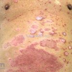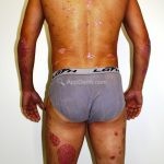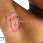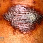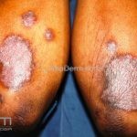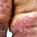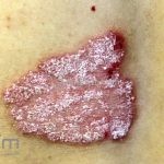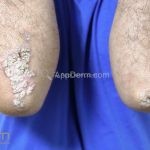 Psoríase em placas: é a variante mais comum, caracterizada por placas eritemato-descamativas, bem demarcadas, com preferência por cotovelos, joelhos, região lombar, couro cabeludo, unhas, genitália e mucosa oral, mas qualquer área do corpo pode ser acometida.