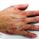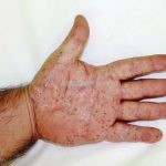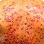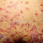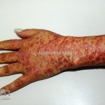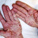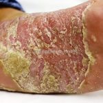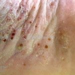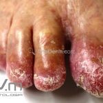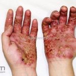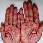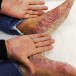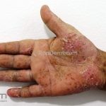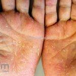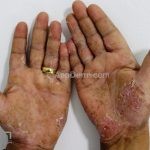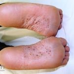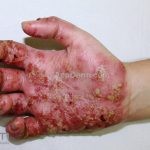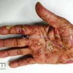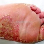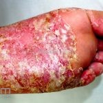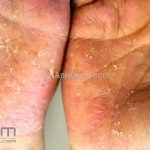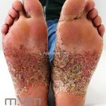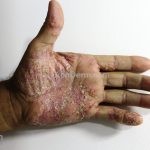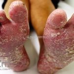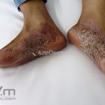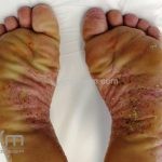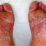 Psoríase pustulosa de palmas e plantas: presença de pústulas “estéreis” nas palmas e plantas, mescladas com máculas amarelo-amarronzadas. Placas eritemato-descamativas podem, eventualmente, ser observadas. Infecções focais e estresse foram relatados como desencadeantes, e o fumo pode agravar a doença. Associação com lesões inflamatórias estéreis dos ossos, como osteomielite multifocal recorrente crônica, artro-osteíte pustular e síndrome SAPHO (sinovite, acne, pustulose palmoplantar, hiperostose e osteíte).