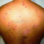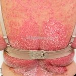 Psoríase gotada: lesões eritemato-descamativas gotadas e disseminadas, o acometimento da face é frequente. É mais observada em crianças e adolescentes, sendo frequentemente precedida de infecção no trato respiratório superior. O quadro costuma involuir após três meses.