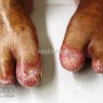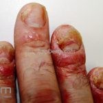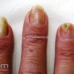 Acrodermatite contínua de Hallopeau: é uma forma rara, caracterizada por pústulas nas porções distais dos dedos e unhas das mãos, às vezes, dos pés. Pode haver transições para outras formas das doenças. A acrodermatite de Hallopeau foi associada com annulus migrans na língua.