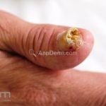 Psoríase ungueal: é mais comum nos adultos, sendo associada com artrite psoriática. O acometimento pode afetar a matriz (ao exame: pitting, leuconíquia e lâminas fragmentadas); o leito (ao exame: “mancha em óleo”, hemorragias em linhas, hiperqueratose e onicólise); e o hiponíquio.