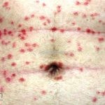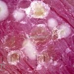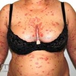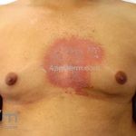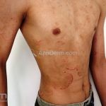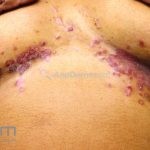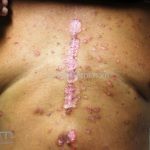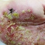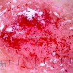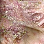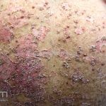 Os microabscesso de Munro (coleções de neutrófilos na camada córnea) e a pústula de Kogoj (vesícula intraepidérmica espongiótica com neutrófilos) podem ser encontrados. Na derme, os vasos são tortuosos e o infiltrado é linfocítico, moderado, perivascular superficial.