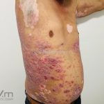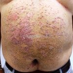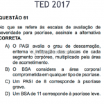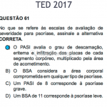 O PASI (Índice de gravidade de área afetada pela psoríase) avalia o grau de descamação, eritema e infiltração das placas de cada segmento corpóreo, multiplicado pela área de acometimento.