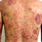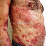Ciclosporina: isolada do fungo Tolypocladium inflatum, é inibidora da calcineurina, impede a ativação dos linfócitos T durante a liberação de citocinas efetoras (IL-2). A ciclosporina é segura, desde que as diretrizes sejam seguidas, pois apresenta efeitos nefrotóxicos. Avaliar a função renal antes do tratamento. A dose utilizada é de 2,5-5mg/kg/dia, por vários meses (máximo 1 ano). Efeitos colaterais: neoplasias malignas cutâneas, desconforto gastrointestinal, hipertricose, parestesia, hiperplasia gengival, vertigem, cãibras, hipercalcemia, hipomagnesemia, hiperuricemia, elevação de colesterol e triglicerídeos. Contra-indicações: função renal comprometida, hipertensão descontrolada, histórico de PUVA (>200 sessões) ou radioterapia, infecções graves, alergias, malignidades, gravidez, lactação, epilepsia, diabete descontrolado, histórico de exposição ao arsênico, doença hepática, drogas que alteram a farmacocinética da ciclosporina via CYP3A4 (azólicos, eritromicina, claritromicina, ciprofloxacina, fluoxetina e ranitidina aumentam os níveis de ciclosporina; rifampicina, isoniazida, fenitoína, fenobarbital, griseofulvina e dexametasona diminuem os níveis de ciclosporina).