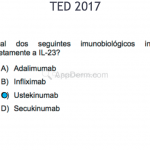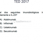 Secukinumab: é um anticorpo monoclonal totalmente humano contra IL-17A. Recomendado para psoríase moderada a grave, na dose de 150mg/2x/dia, nas semanas 0, 1, 2, 3 e 4, seguidas por uma dose mensal de manutenção. Efeitos adversos: nasofaringite, IVAS, diarreia, herpes oral e urticária.