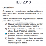 Os critérios de CASPAR auxiliam no diagnóstico de artrite psoriática (história pessoal ou familiar de psoríase, distrofia ungueal, fator reumatoide negativo, dactilite e neoformação óssea justa-articular ao raio X).