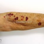 São manchas pupúricas que variam bastante na forma e tamanho.