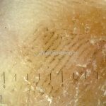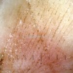 Dermatoscopia: padrão de espículas pigmentadas com aspecto salpicado, não respeitando os dermatóglifos.