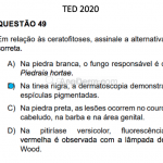 Histopatológico: pele com aspecto normal e hifas demáceas septadas e ramificadas na camada córnea. Pode haver acantose e mínimo infiltrado inflamatório linfocitário perivascular.