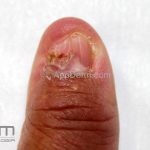 É uma pápula ou nódulo, eritematoso ou violáceo, muito doloroso, localizado, classicamente, na região subungueal.