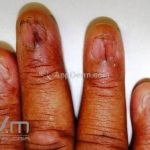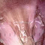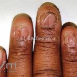 Crescimento da dobra ungueal proximal em direção à borda livre da lâmina ungueal, que adquire um formato triangular. AppDerm®