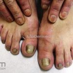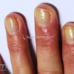 Lâmina ungueal com a coloração amarelada.
