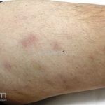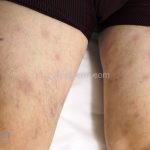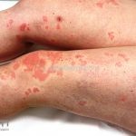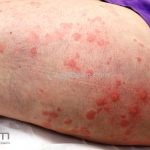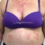 As lesões ocorrem de maneira espontânea ou após pequenos traumas na pele. São placas urticadas eritematosas ou purpúricas, localizadas em tronco e porção proximal dos membros. Podem deixar manchas residuais.
