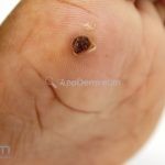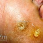 Verruga plantar: são pápulas ou placas hipequeratósicas, normocrômicas, dolorosas e podem haver vasos trombosados na superfície da lesão. Verrugas tipo “mirmécia” (formigueiro) e tipo “mosaico” são variantes deste subtipo.