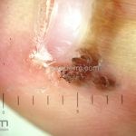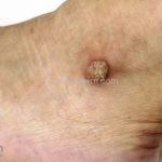 Verruga plantar: são pápulas ou placas hipequeratósicas, normocrômicas, dolorosas e podem haver vasos trombosados na superfície da lesão. Verrugas tipo “mirmécia” (formigueiro) e tipo “mosaico” são variantes deste subtipo.