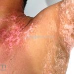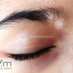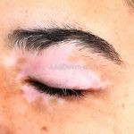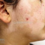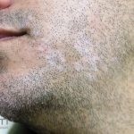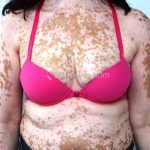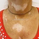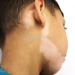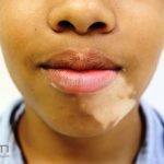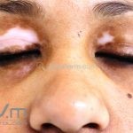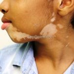 O vitiligo costuma se manifestar na adolescência, surgem manchas acrômicas em áreas periorificiais (boca, olhos, nariz, ouvidos e genitália), mas também pode ocorrer em pescoço, cotovelos, joelhos e mãos.