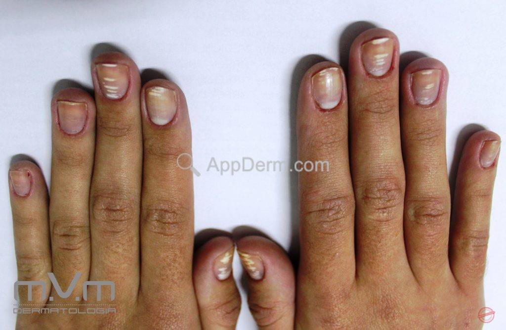 São sulcos transversais na superfície da lâmina ungueal.