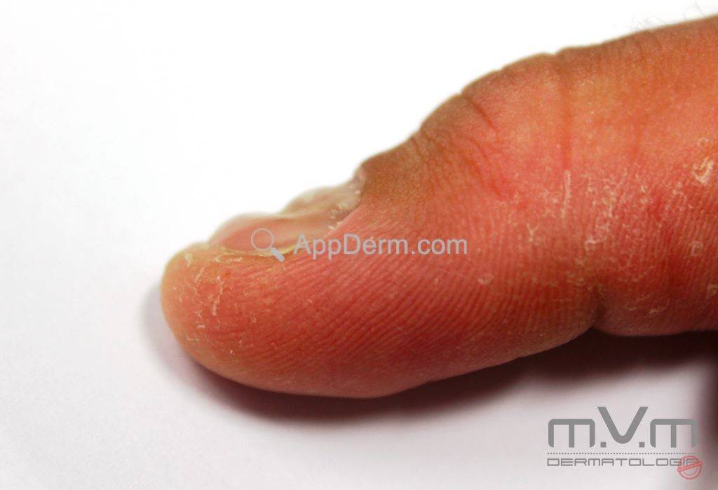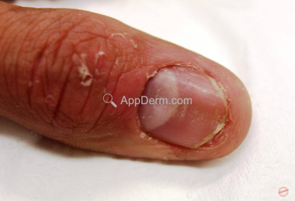 É a diminuição da aderência entre as camadas da lâmina ungueal, havendo uma descamação lamelar, melhor visualizada na borda livre da lâmina.AppDerm®